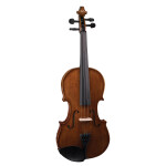 Polished warm brown laquer finish. outfits include octagonal wood horsehair bow with ebony frog, lightweight canvas covered case with instrument blanket and exterior shoulder rest pocket(violin/viola) or padded backpack bag (cello/bass)