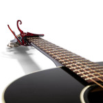 Kyser 6 Strings Guitar Capo Black KG6B Kyser 6 Strings Guitar Capo, KG6. A perfect fit for the necks and fingerboards of acoustic 6-string guitars. A snap to park on the headstock and then reposition between frets using just one hand. The music worlds most popular quick release capo, this quick-change Capo is made of strong, light-weight aluminum. The spring tensioned Quick-Change clamps firmly to hold intonation, but is quickly and easily released and repositioned without disturbing the tuning. You can operate your Quick-Change comfortably with one hand.